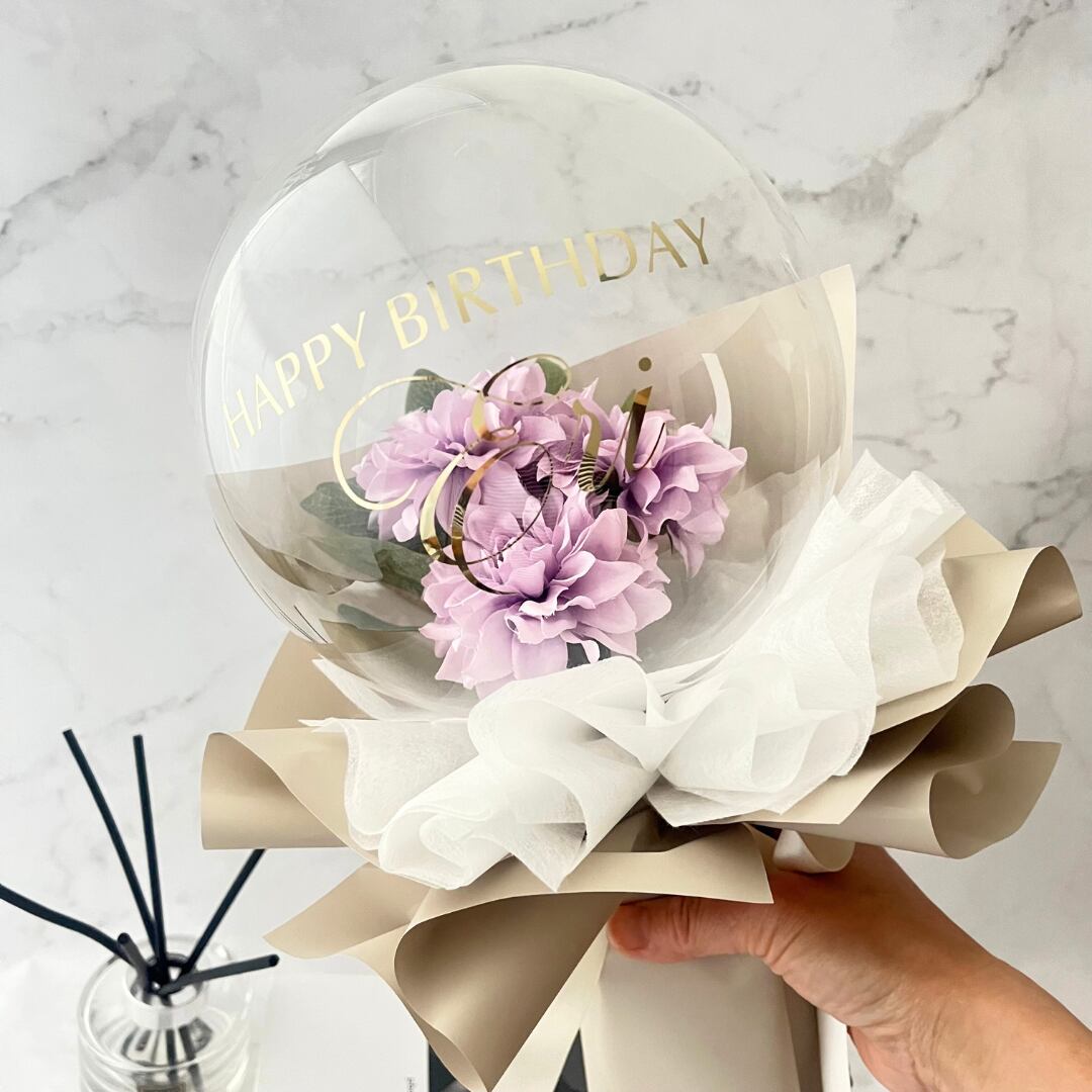 【誕生日お祝いに】パープルダリアのバルーンフラワーブーケ(ミニサイズ)