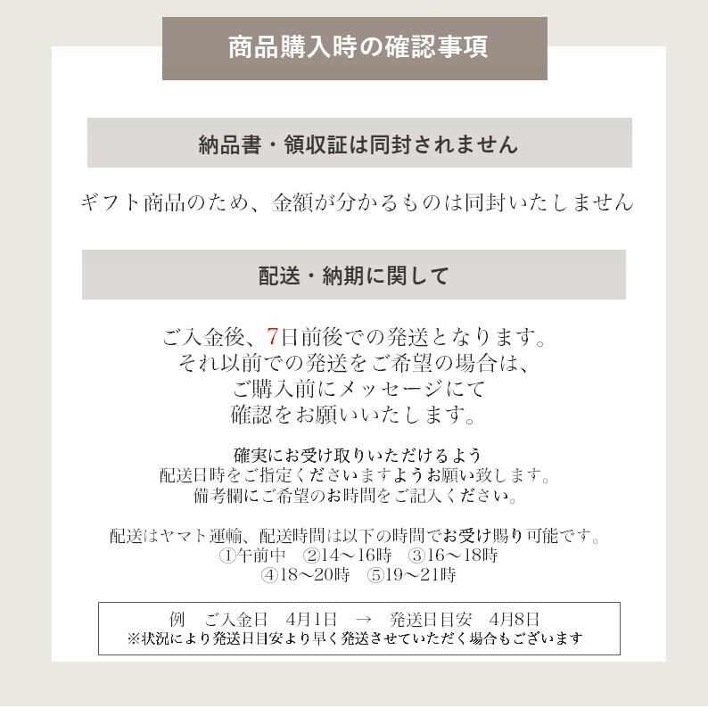 配送中の万一の事態に備え、お日にちに余裕を持ったお届け日の指定をおすすめします。